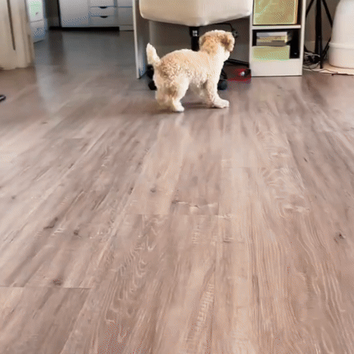 Start bare enheten, plasser den på gulvet og se hvordan hunden din løper rundt og leker i timevis!